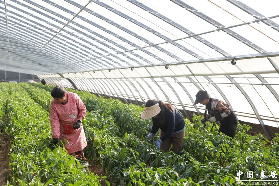 时下,走进秦安县五营镇蔡河村的果蔬育苗中心大棚里,翠绿的枝叶间挂满了色泽鲜亮的辣椒,农户们正忙着采摘、分拣、装箱,一派热火朝天的丰收景象。